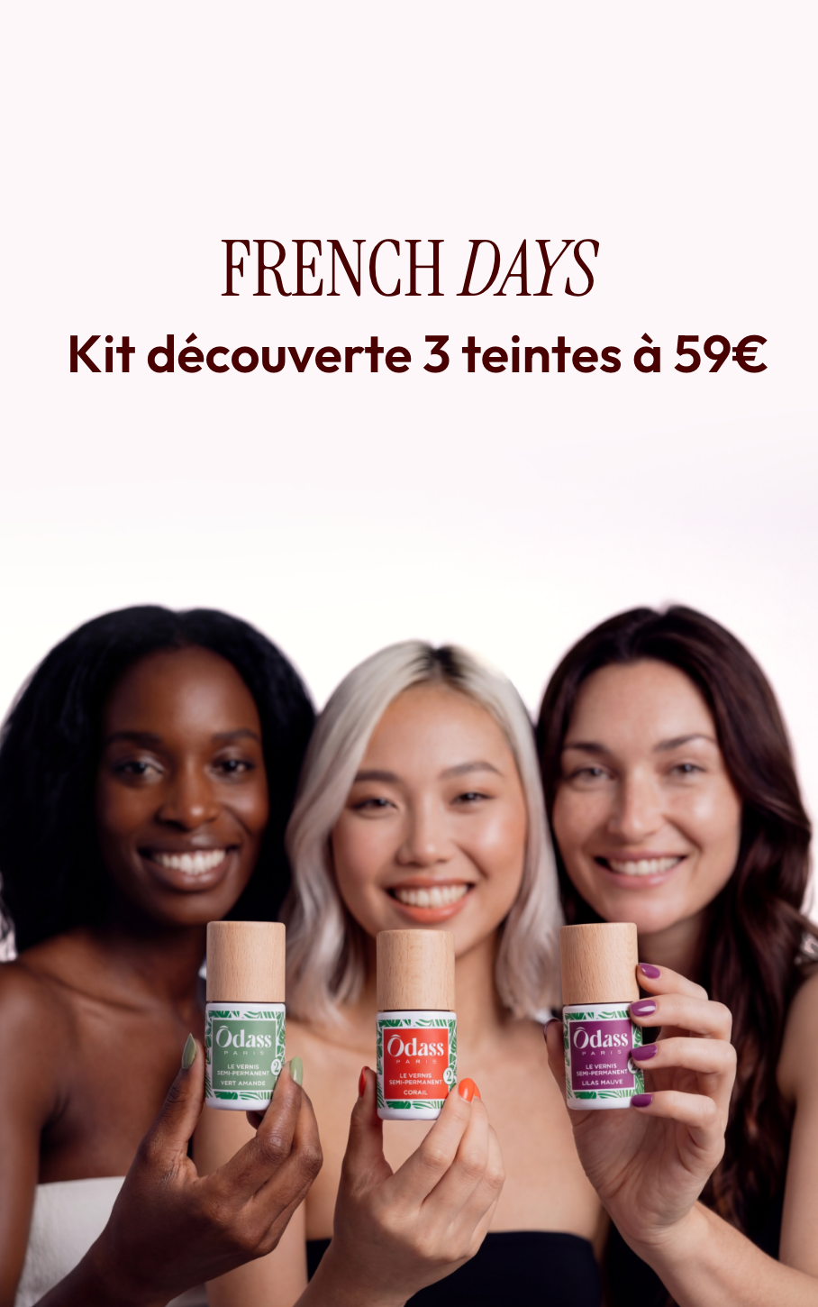 "La marque respectueuse des ongles qui révolutionne l'univers de la manucure" "Une qualité exceptionnelle" “Des vernis semi-permanents à la maison !” "Ôdass Paris respecte les ongles !" "On a adoré" "Aux couleurs éclatantes et qui en plus, ne bougent pas d'un iota pendant 12 jours" "Un des meilleurs kits de vernis semi-permanants" "L'art de l'élégance responsable" "Un vernis semi-permanent qui respecte les ongles (oui oui !)" "La solution parfaite pour appliquer soi-même son vernis semi-permanent tout en respectant ses ongles" "Des cadeaux à offrir à toute la famille" "Des cadeaux pour tous les goûts et à tous les prix" "Des vernis semi-permanents à la texture agréable" "Les produits idéaux pour reproduire le Nail Art"